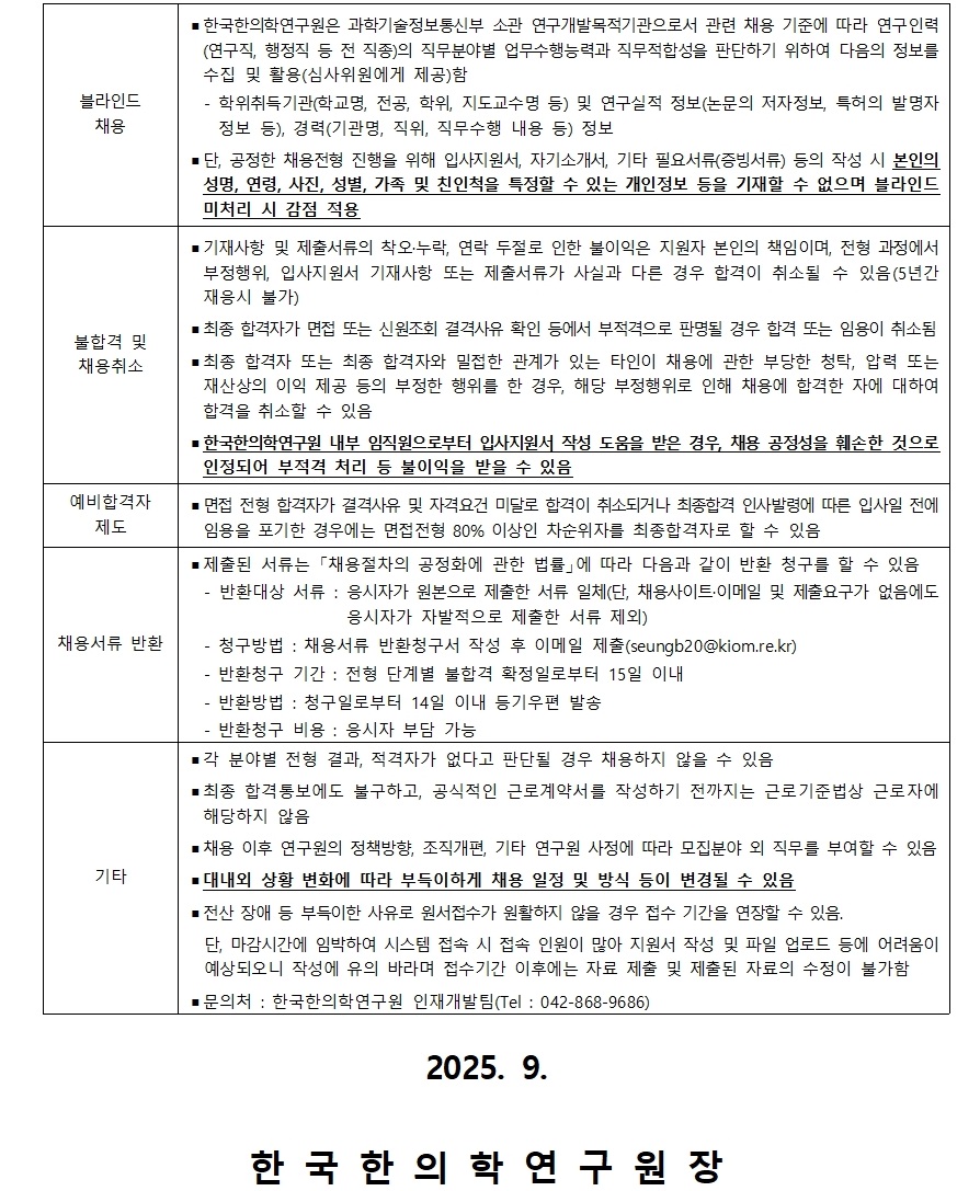 한국한의학연구원 2026년도 전기 학연협동 석박사학위과정생 모집 공고